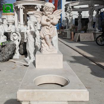 Europe Style Egypt Beige Marble Small Angel Tombstone Sculpture Cemetery Children Headstone Statue