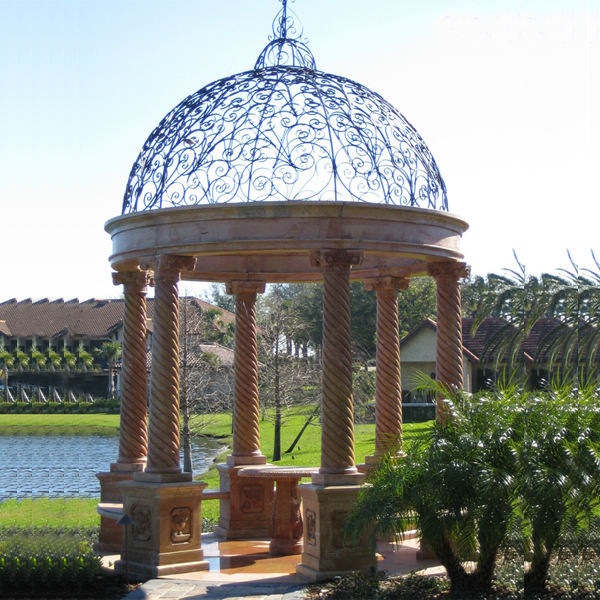 Garden Decoration Antique Color Natural Beige Marble Travertine Columns Stone Gazebo