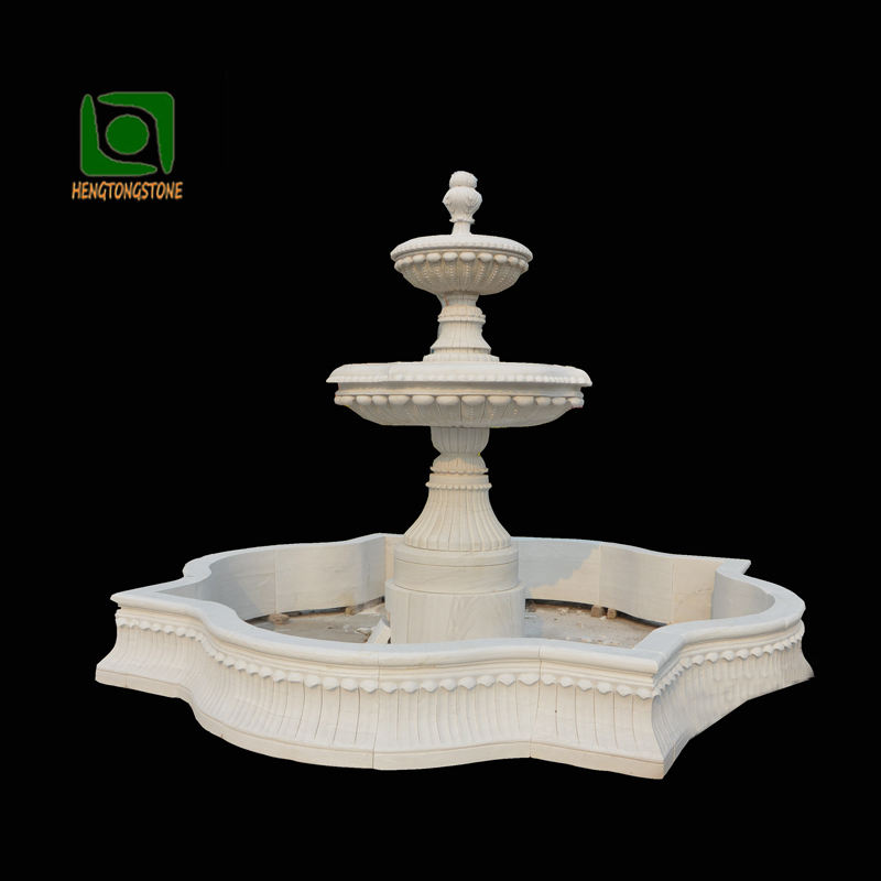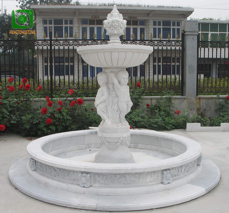 Stock 3 Tiers White Marble Carving Garden Decorative Stone Water Fountain