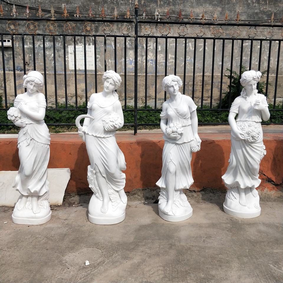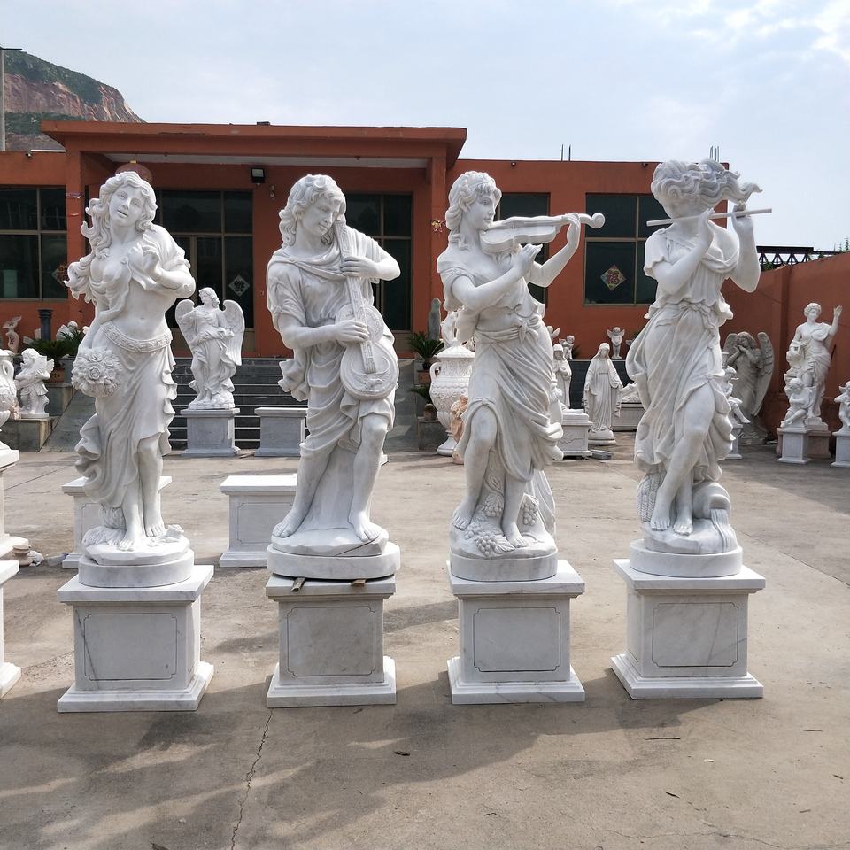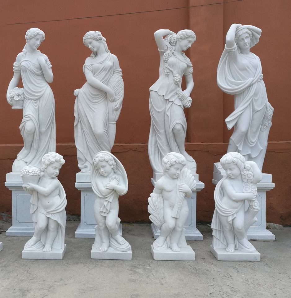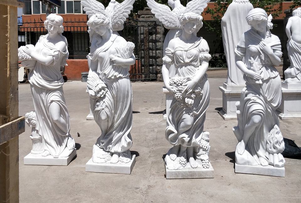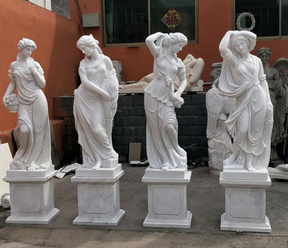 Outdoor Hotel Decoration Life Size Natual White Marble Four Season Lady Statue