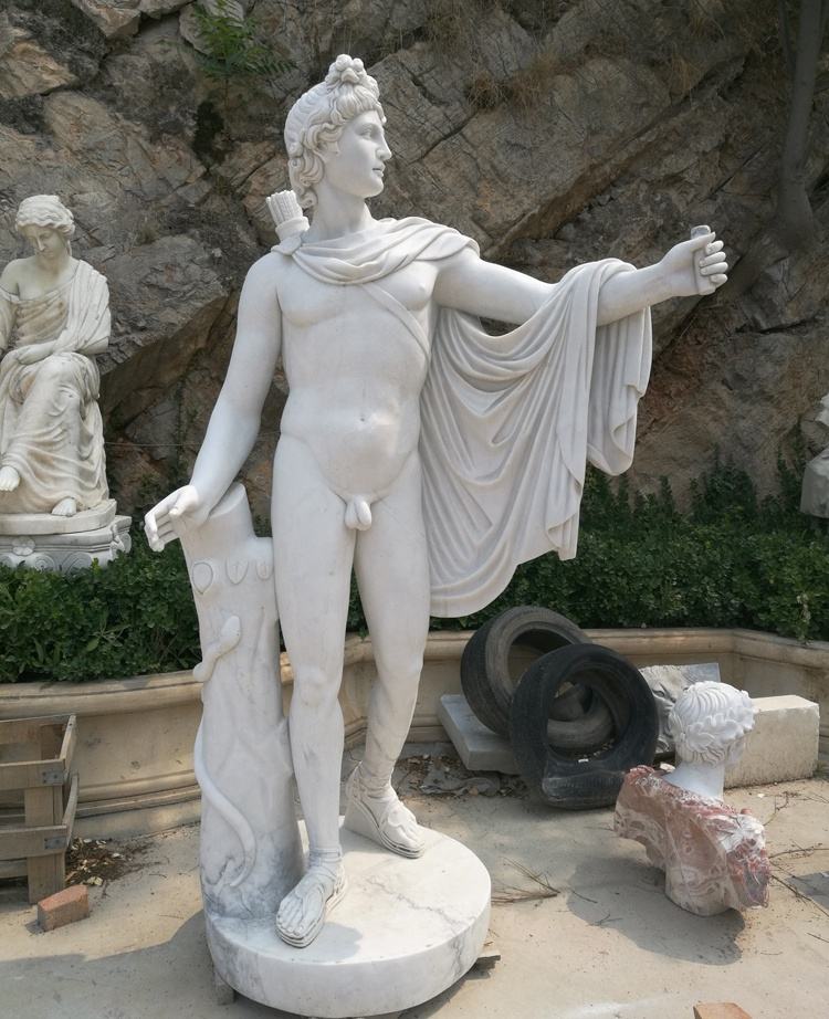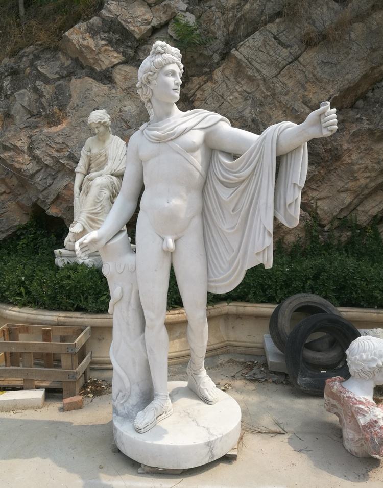 Famous Hand Carved Life Size Natural White Marble Greek Apollo Figure Statue