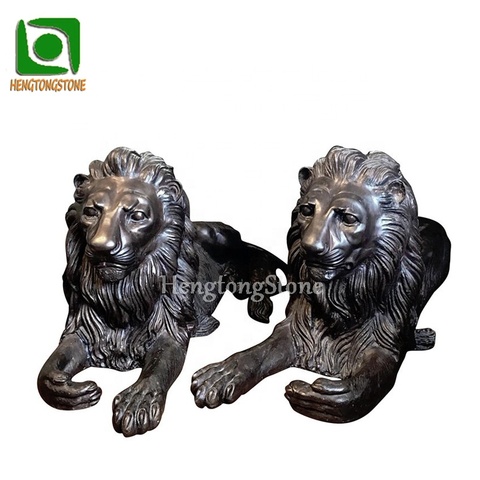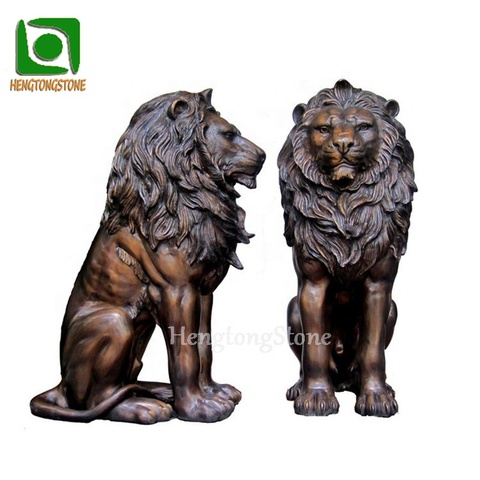 Antique Color Life Size Metal Casting Brass Outdoor Entrance Decoration Sitting Pair Lion Animal Statue Sculpture