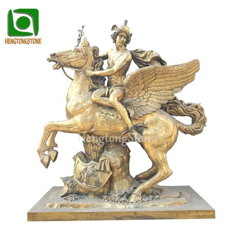 Metal Antique Color Bronze Casting Outdoor Decoration Flying Horse Sculpture With Wings