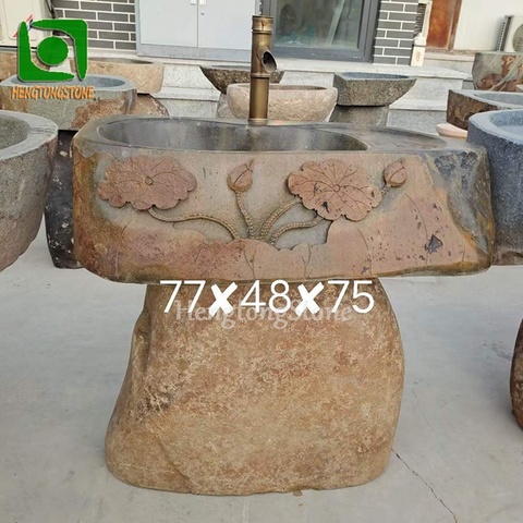 Chinese Style Granite Carved Sink Shelf Sculpture Stone Freestanding Basin