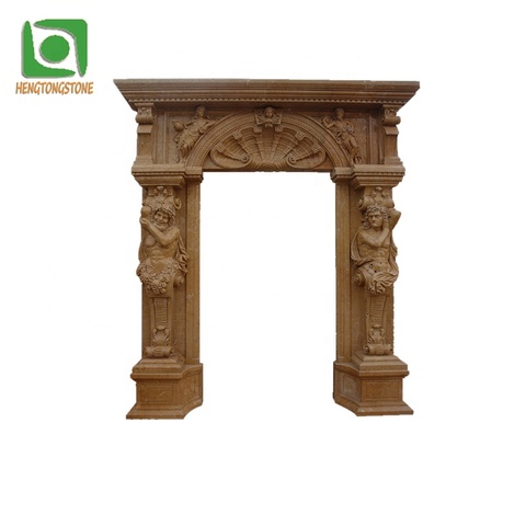 Factory Custom Western Yellow Stone Lady Column Carved Door Frame Surround