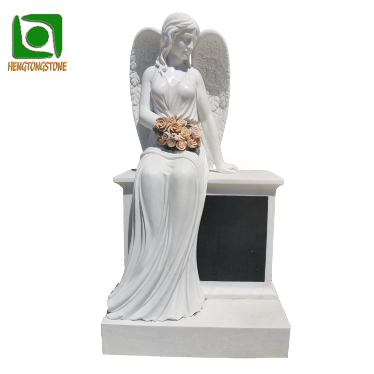 Europe Style Marble Carving Angel Tombstone Sculpture Cemetery Stone Headstone